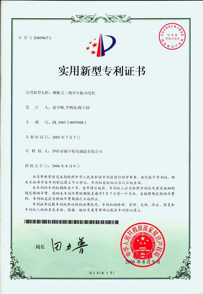 实用新型专利证书