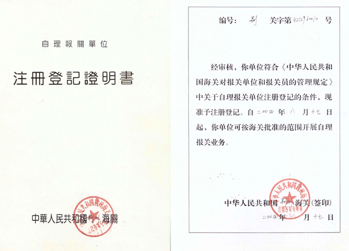 自理报关单位注册登记证明书正文