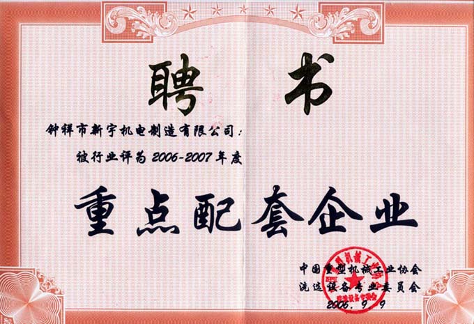 重点配套企业证书